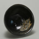 Description"Konoha Temamoku: tea bowl in temmoku form glazed in almost black leaving stenciled maple leaf in silvery brown on buff white clay body.Tsunezo Arao