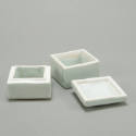 DescriptionLight-green/white stacking boxes (2) with lid. White glazed interior. Called "jubako" (meaning stacked boxes.ca. 1950, staff