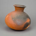 DescriptionOrange pot with darker fire clouds. Jar-shape with rounded body tapering to small top opening with slight rim.Juan Ruiz de Luna